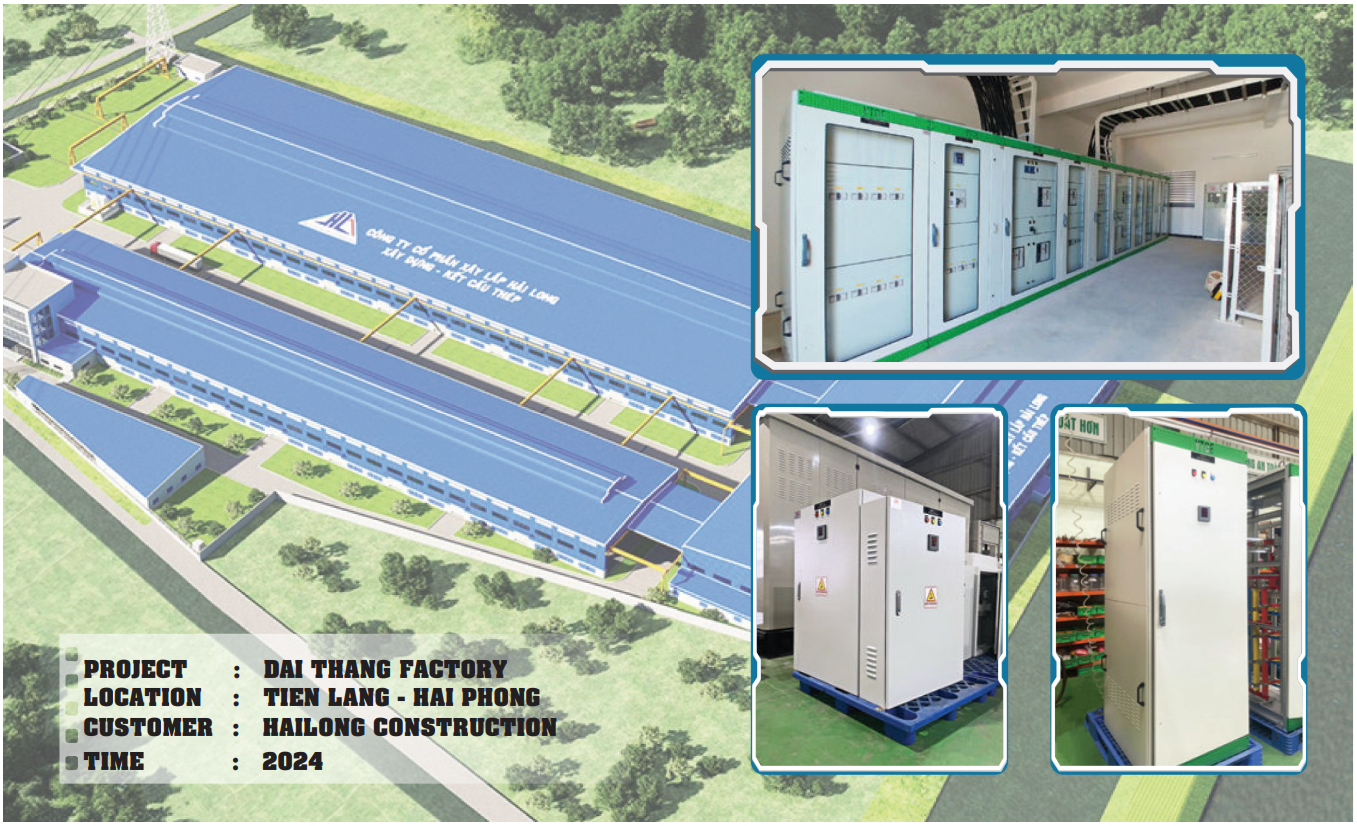 Khách hàng: Công ty CP Xây lắp Hải Long Hạng mục: Tủ điện tổng MSB 5000A, Tủ phân phối hạ thế DB, Tủ điện điều khiển Địa điểm: KCN Nam Đình Vũ 1, P. Đông Hải, Tp. Hải Phòng